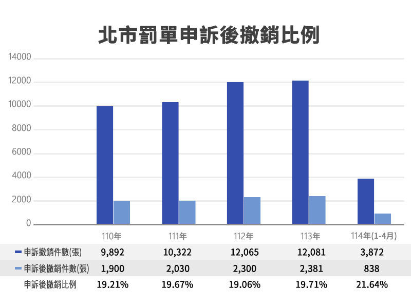 執法品質跟不上強度,有多擾民?依據台北市交通裁決所公布的資料,申訴後撤單比例,近五年約在2成左右,光一個縣市,每年就有上萬張罰單存在瑕疵,雖然最後撤銷了,但討公道付出的心力、時間成本,誰來還?