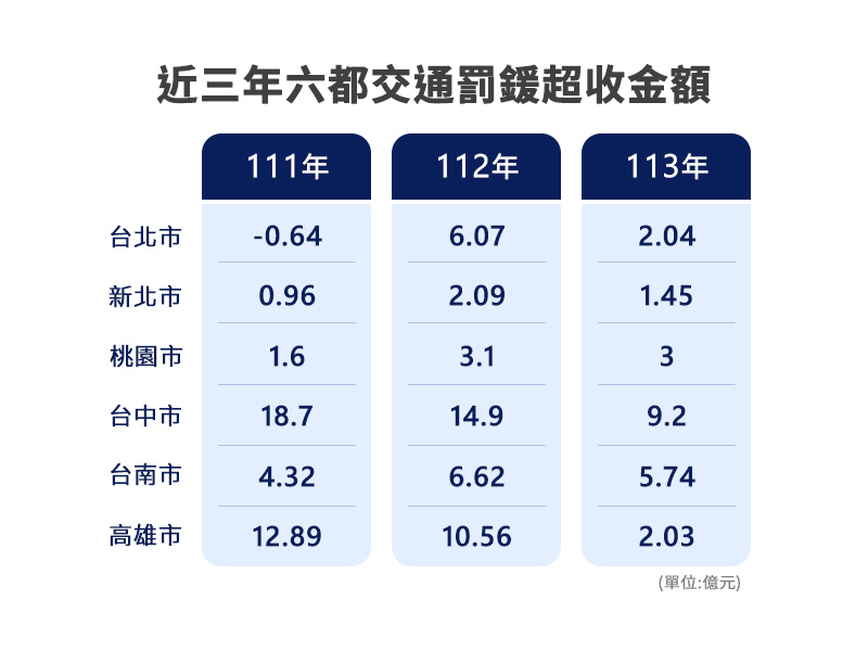 政府年年從人民荷包,拿走上百億交通罰鍰,如此豐沛、穩定的財源,難道不是交通改善最佳經費後盾?立委林月琴直接點出,「交通罰鍰是地方政府的小金庫」。我們追蹤六都罰鍰收入,發現年年超收,其中台中111年決算數更是比預算數一口氣多出18億。