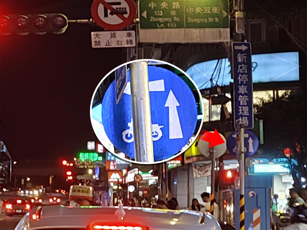 新北蔡小姐2023年騎車經過新店中央路,沒看到兩段式標誌,因此沿著內側車道左轉,卻被員警開出千元罰單,事後才發現標誌躲在電線桿後方。申訴後,分局認定標誌難以辨識、主動撤單。